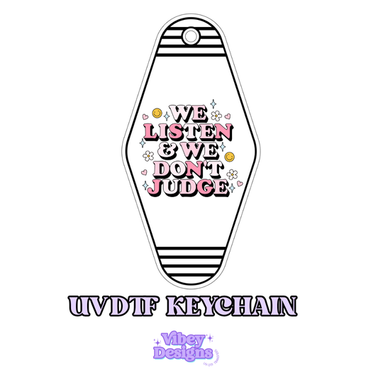 RTS Motel Keychain | Shot glass Decal - We Listen & we don't judge bold