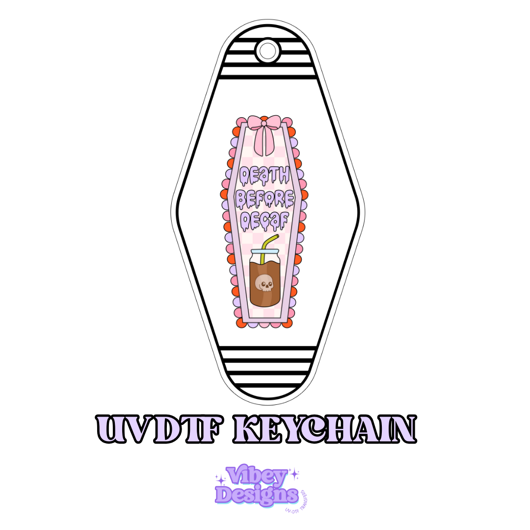 RTS Motel Keychain | Shot glass Decal - Death before Decaf