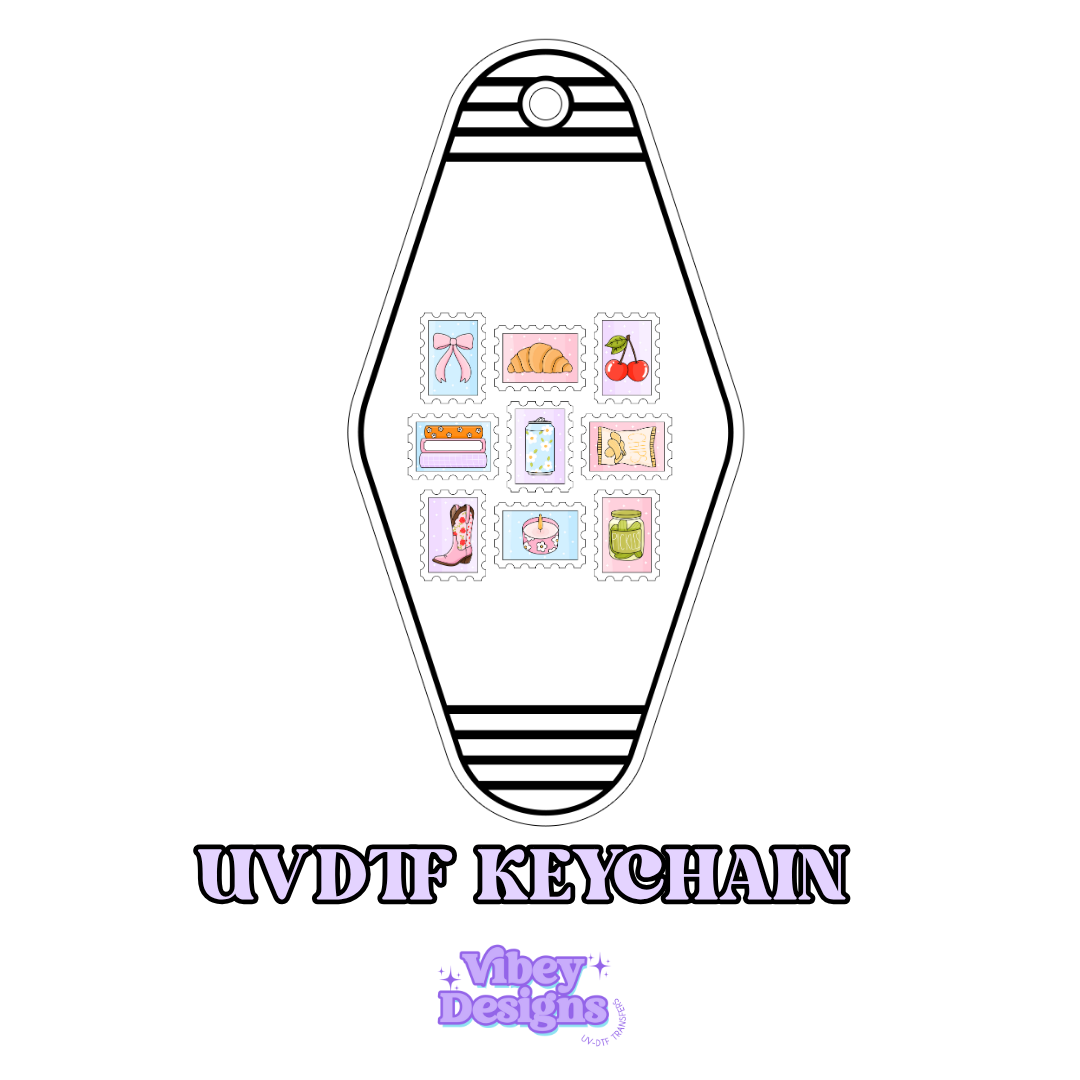 SET OF 5 UVDTF KEYCHAIN DECALS, KEYCHAIN NOT INCLUDED
