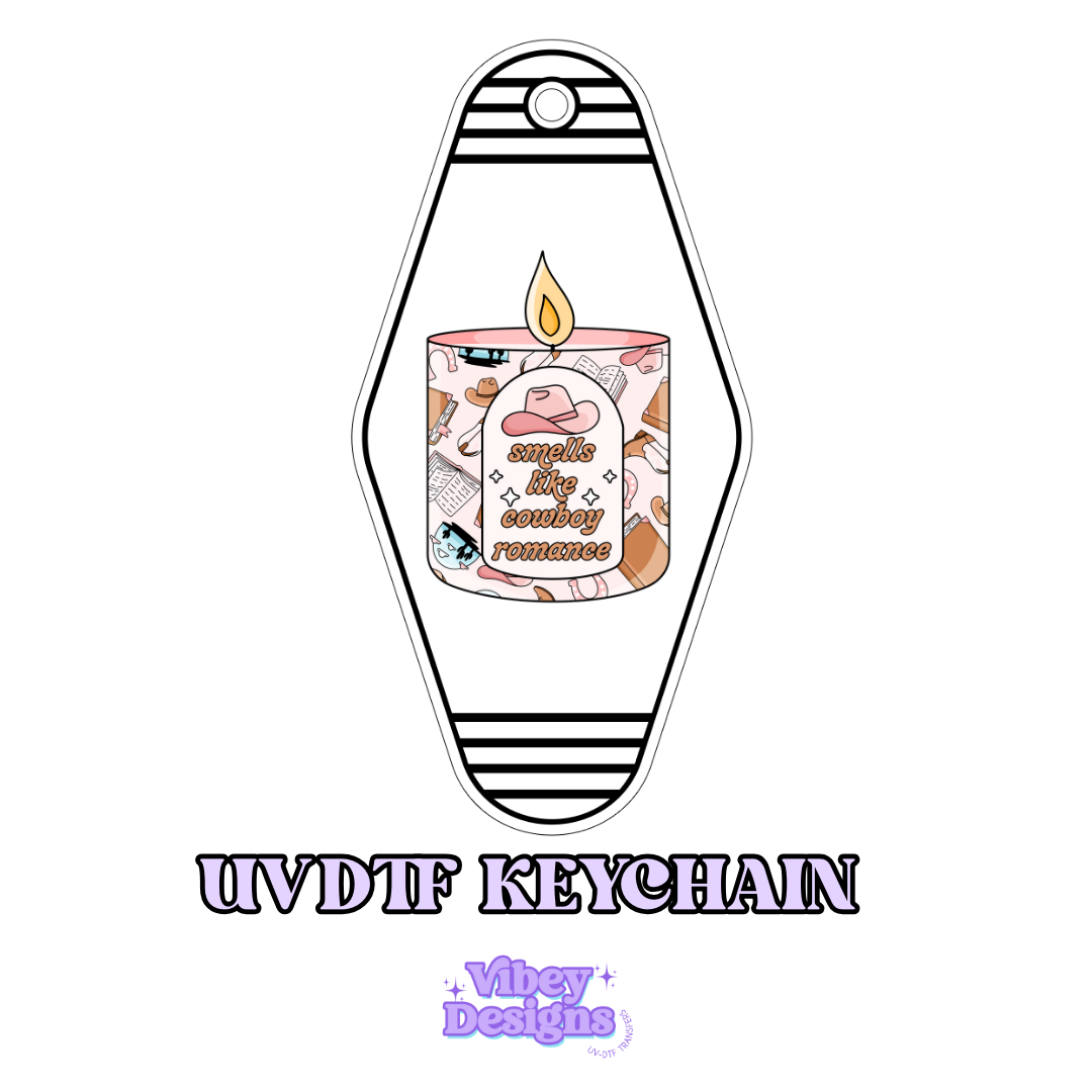RTS Motel Keychain | Shot glass Decal - Smells like Cowboy Romance