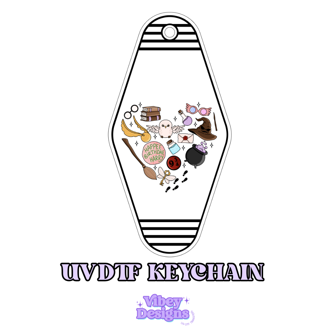 SET OF 5 UVDTF KEYCHAIN DECALS, KEYCHAIN NOT INCLUDED
