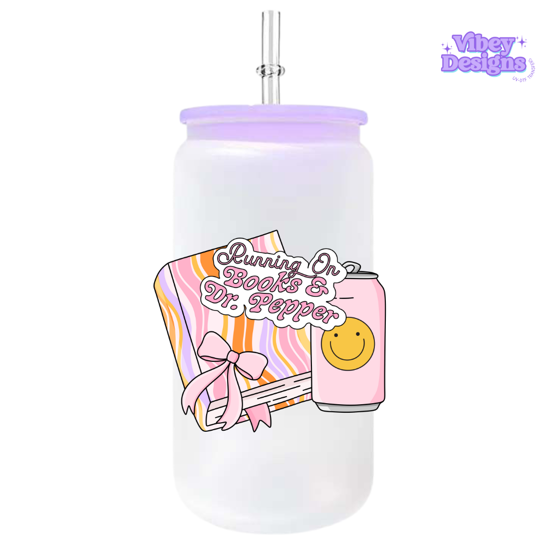 UV-DTF Transfer for Bottle, Glass, Mug, Diary - Running on books and Dr. Pepper
