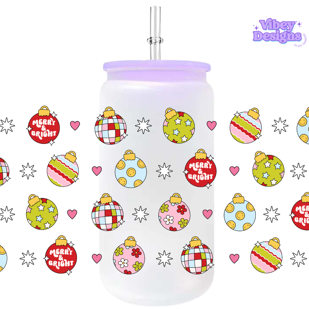 Uv Dtf Wrap For 16oz Libbey Glass - Festive Baubles