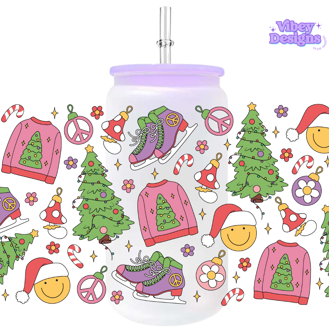 Uv Dtf Wrap For 16oz Libbey Glass - Groovy Holidays