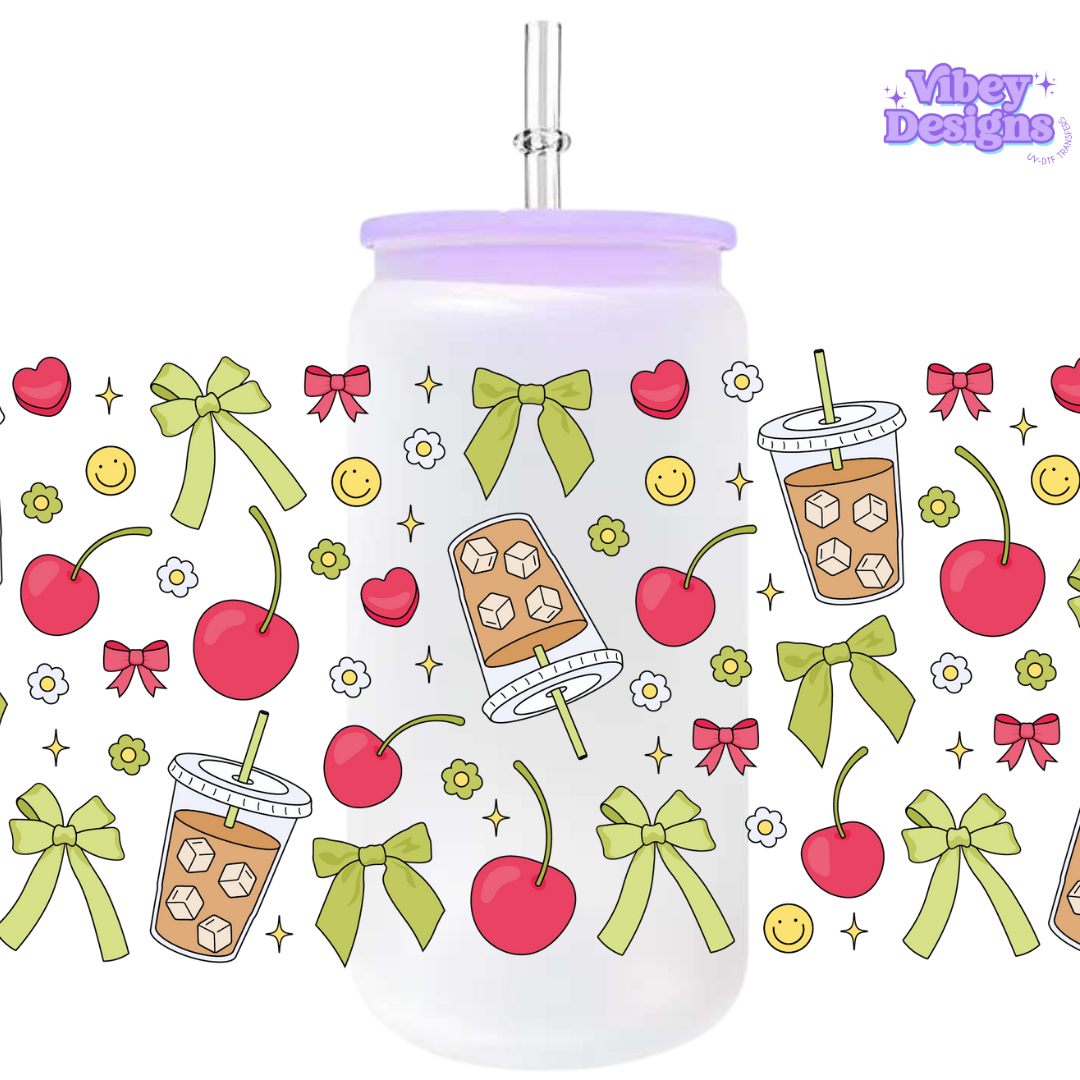 Uv Dtf Wrap For 16oz Libbey Glass - Iced Coffee & Cherries