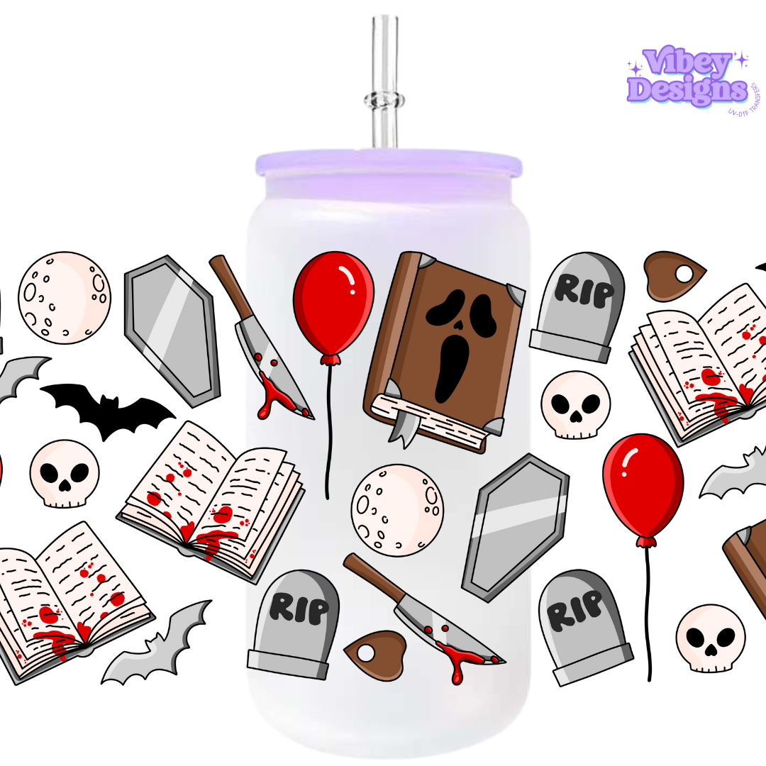 Uv Dtf Wrap For 16oz Libbey Glass - Horror Cup