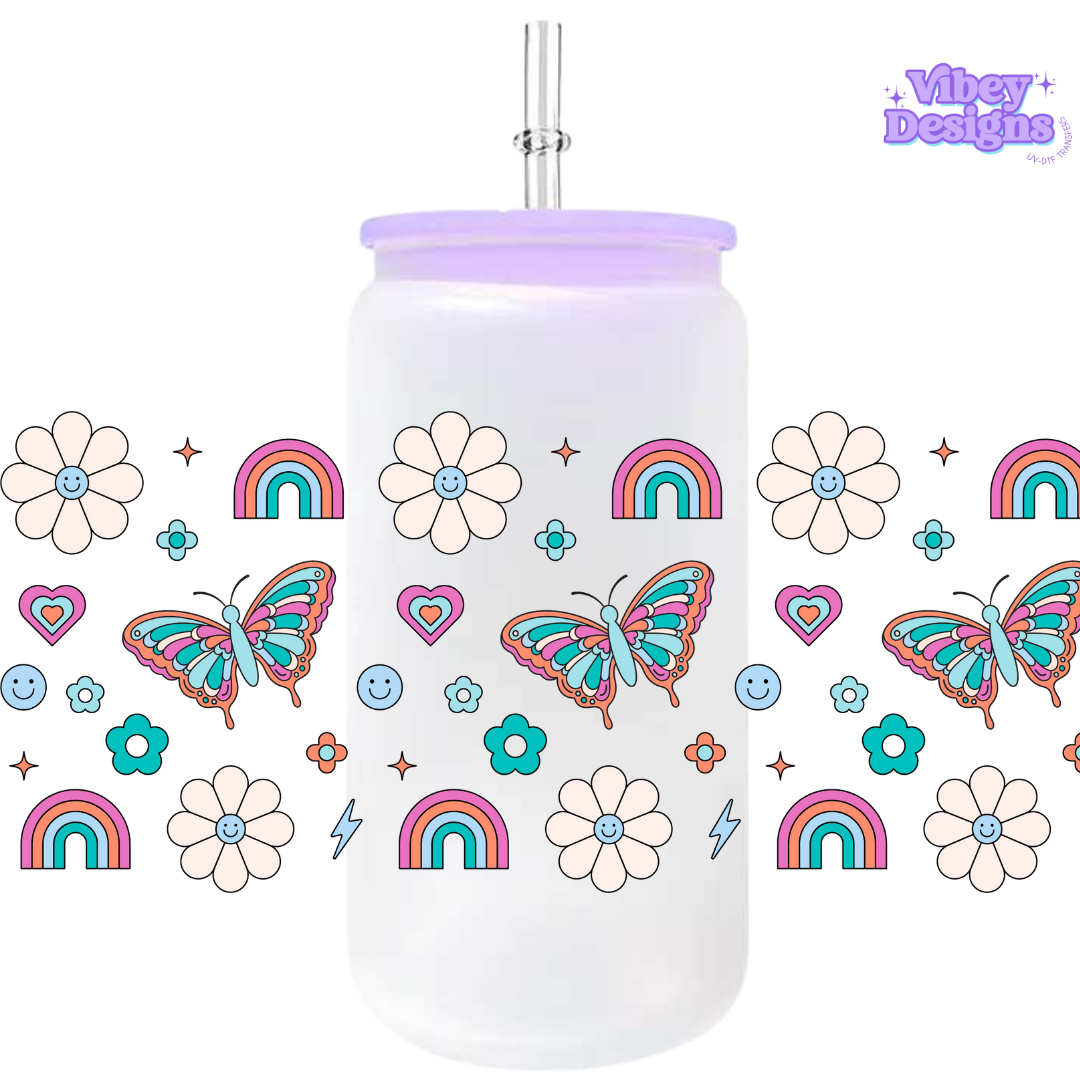 Uv Dtf Wrap For 16oz Libbey Glass - Groovy Moth (Blue)