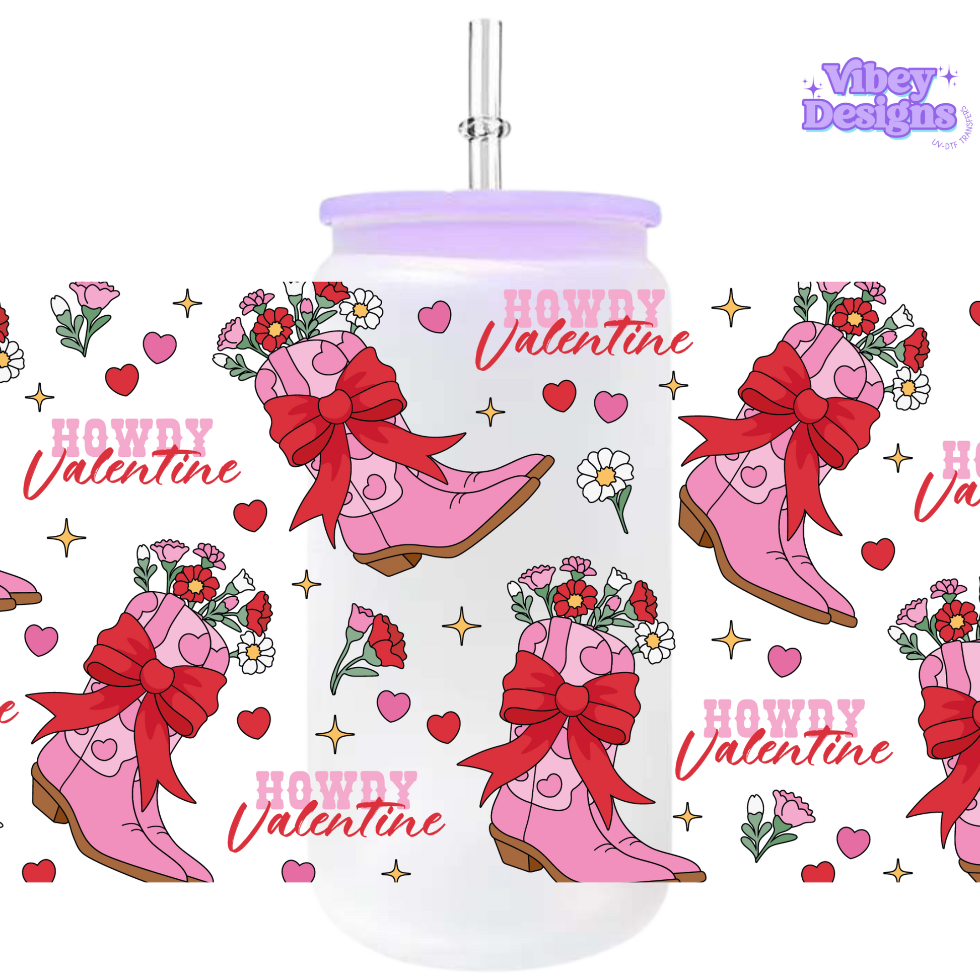Uv DTF Wrap for 16oz Libbey Glass - Howdy Valentine