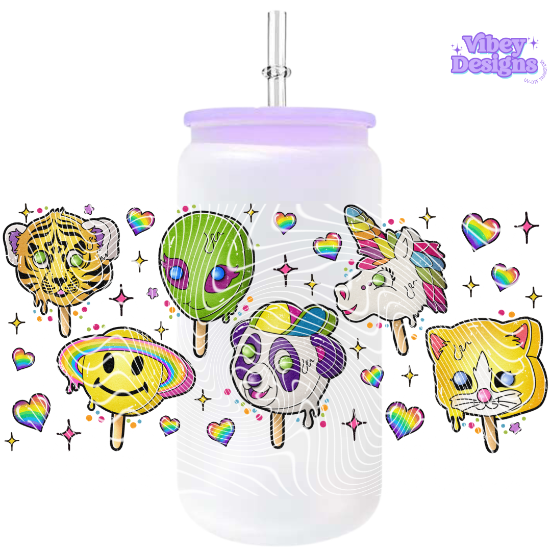 Uv Dtf Wrap For 16oz Libbey Glass - Lisa Frank Pops
